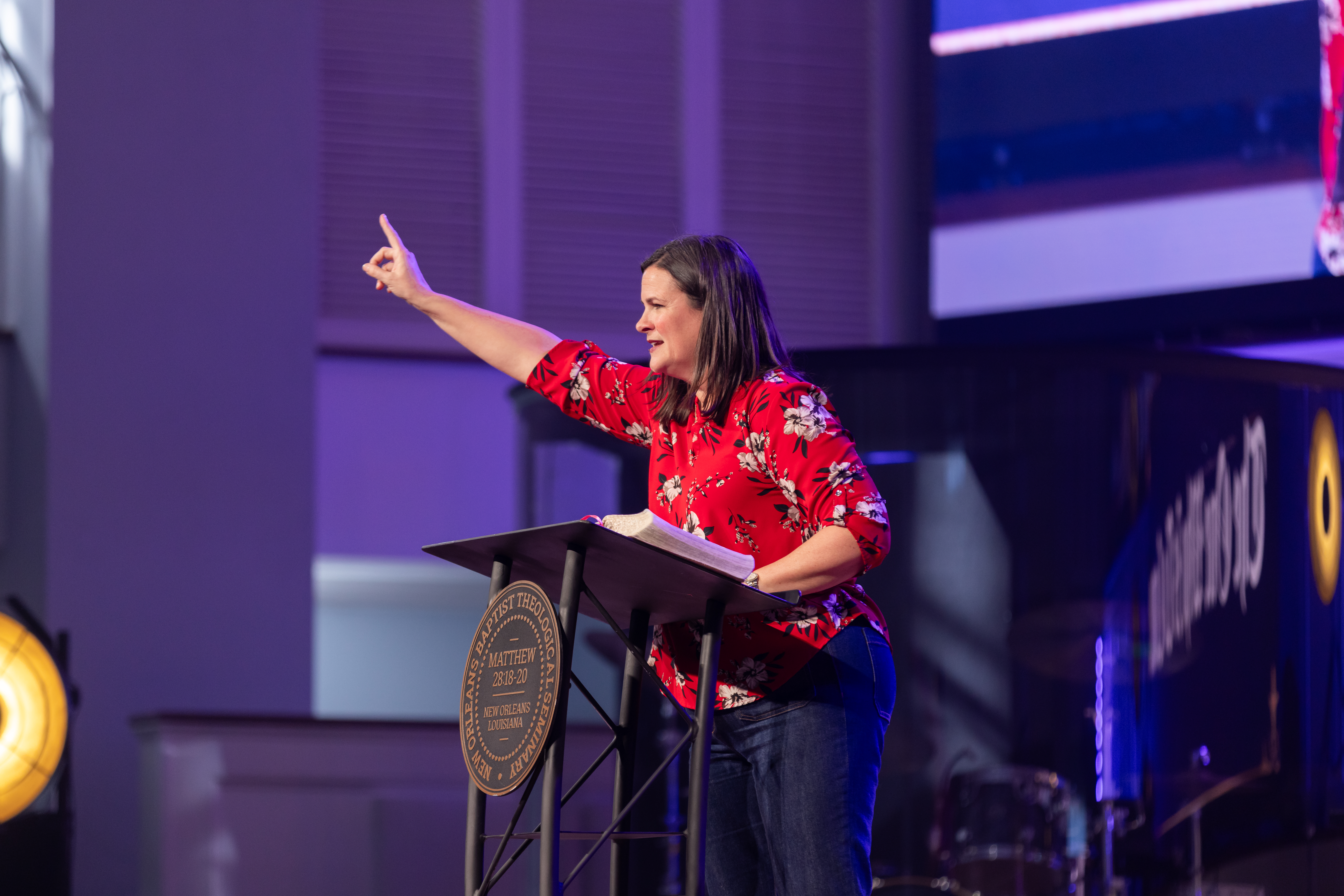 NOBTS President Jamie Dew addressed the sold-out crowd of ladies during the conference and challenged them to genuinely engage during this special event.