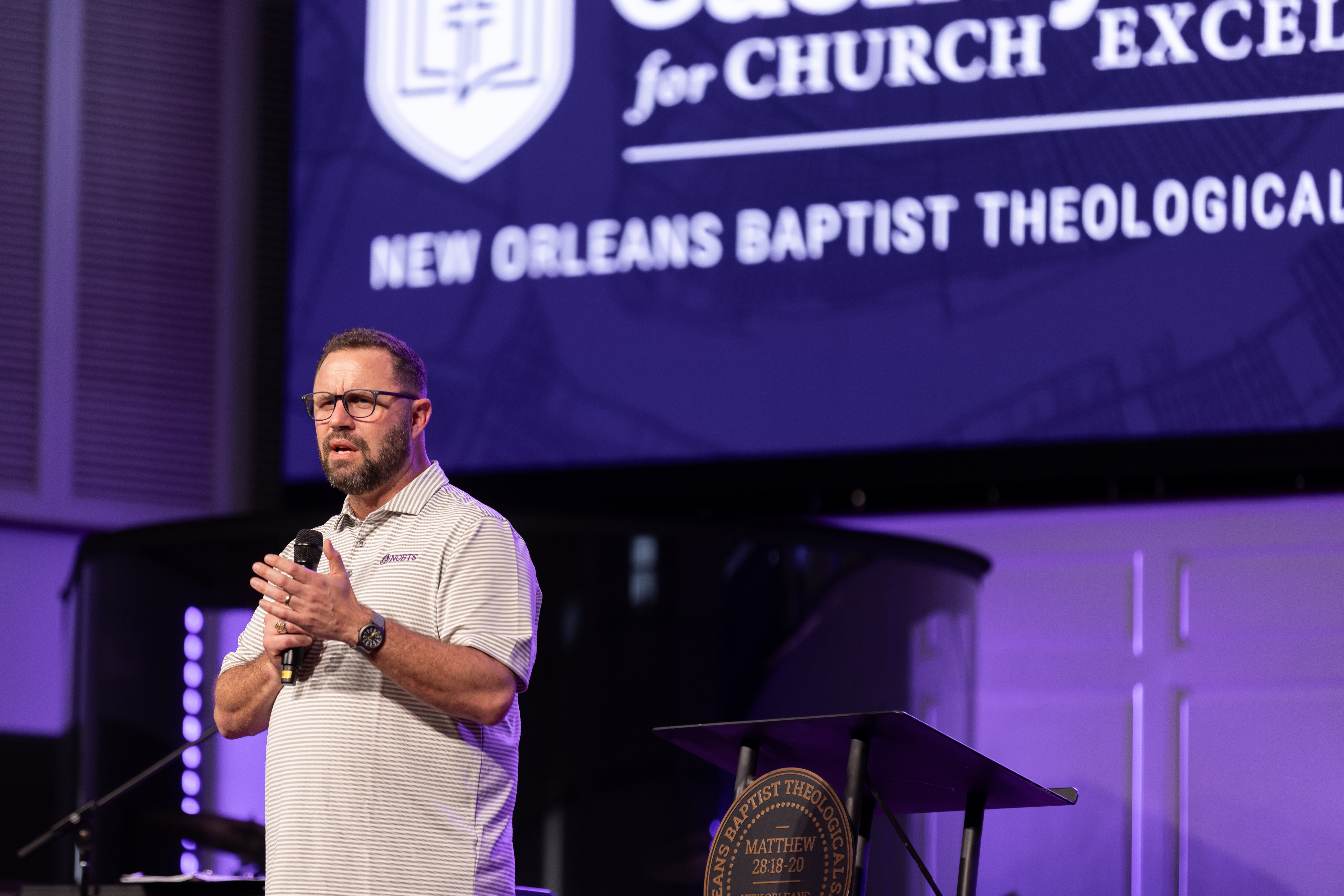 Jamie Dew, president of New Orleans Baptist Theological Seminary, welcomed the group of pastors to campus.